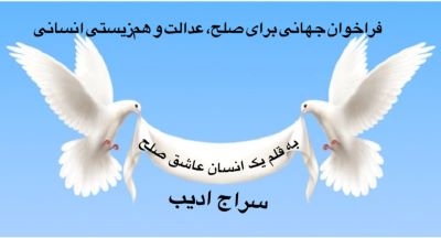 امضا = يک انسان، از ميان رنج، با اميد به صلح « سراج اديب »